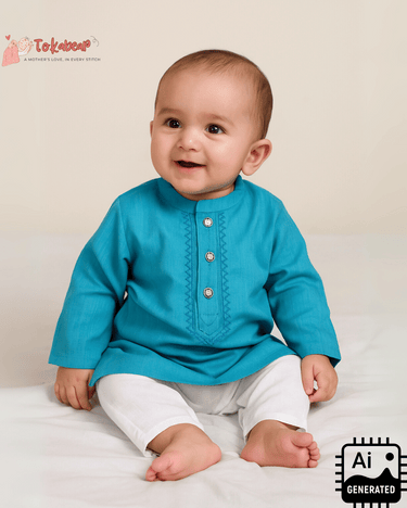 Linen Cotton Embroidered Kurta with Muslin Pajama - Blue Rs. 1,999.00 /