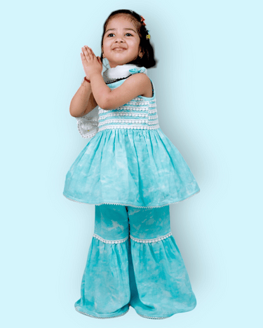 Muslin Sharara & Kurta Set for Girls – Blue Symphony
