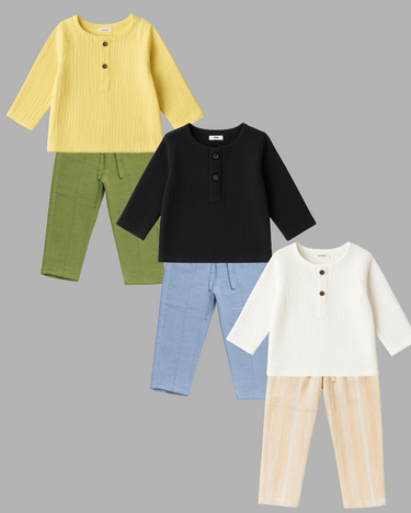 Sale Unisex Muslin Short Kurta/Tee Full Sleeve - Set of 3Rs. 2,997.00From Rs. 1,997.00 / -