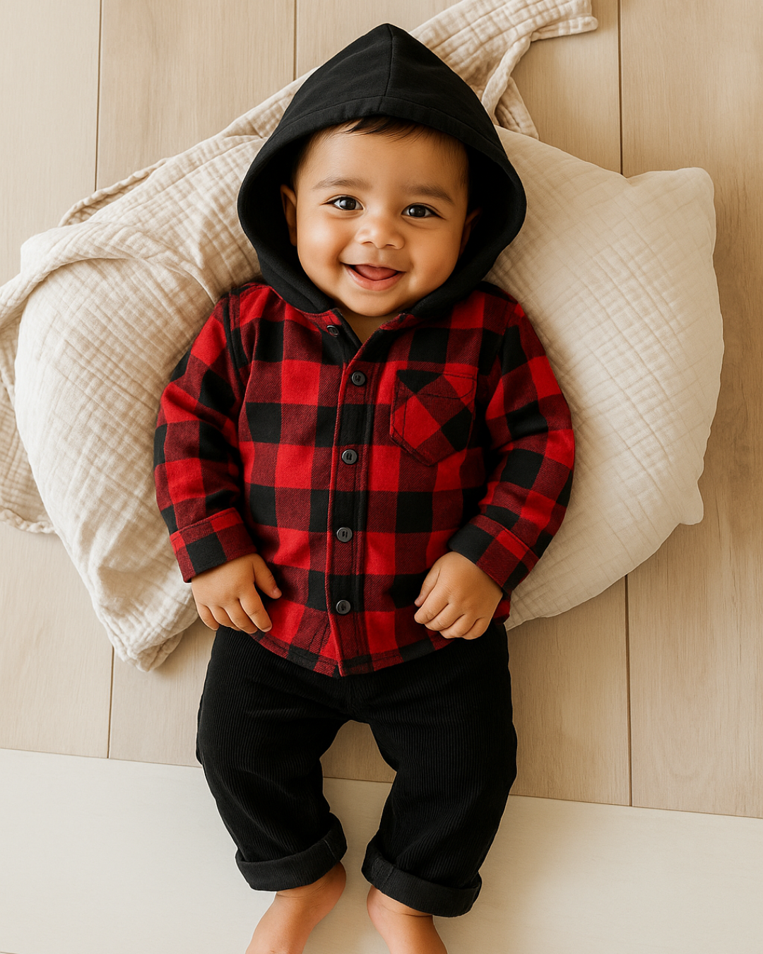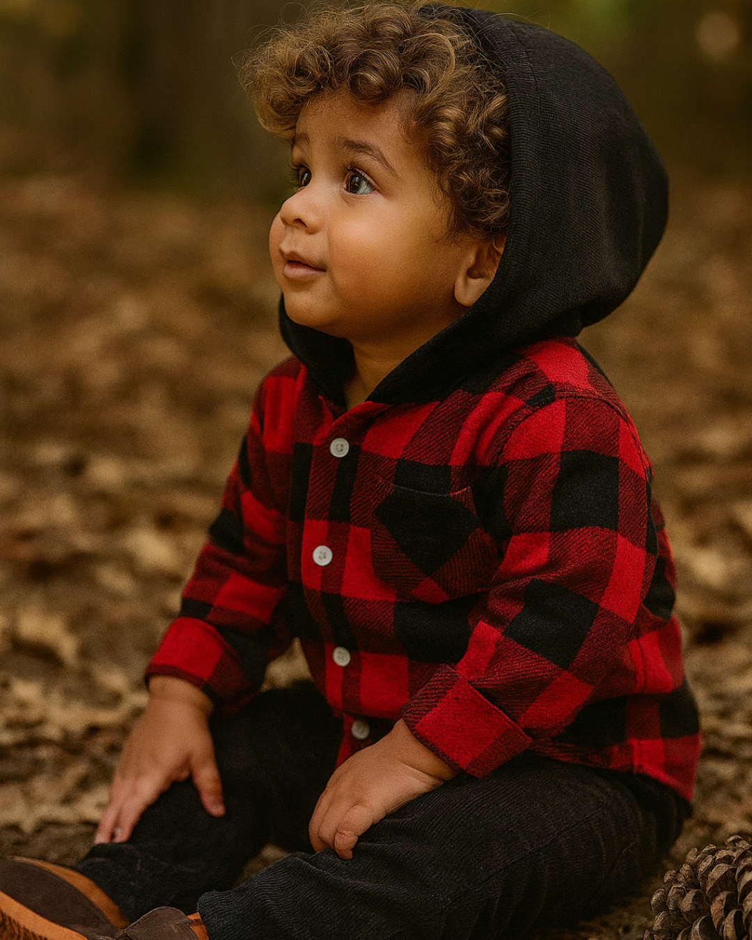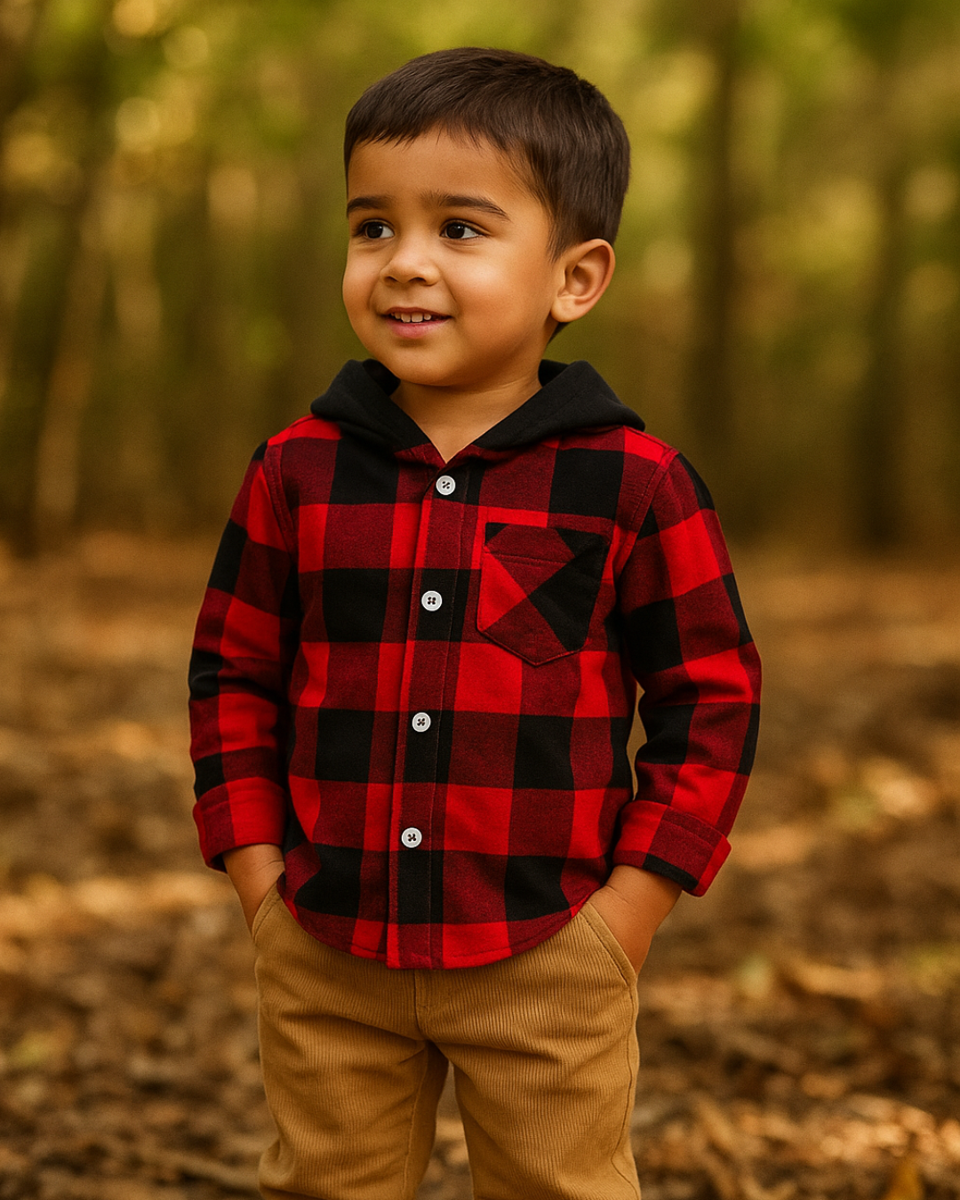 This hooded flannel shirt combines functionality with timeless charm, making it a must-have for your little one's wardrobe. Great for playdates, outings, or everyday wear!
