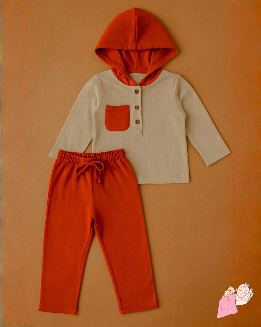 Premium Muslin | 100% Organic | Cotton | Winters | Hood | Jhabla Set | Coord | Top + Bottoms | 4-Layers | Beige + Orange